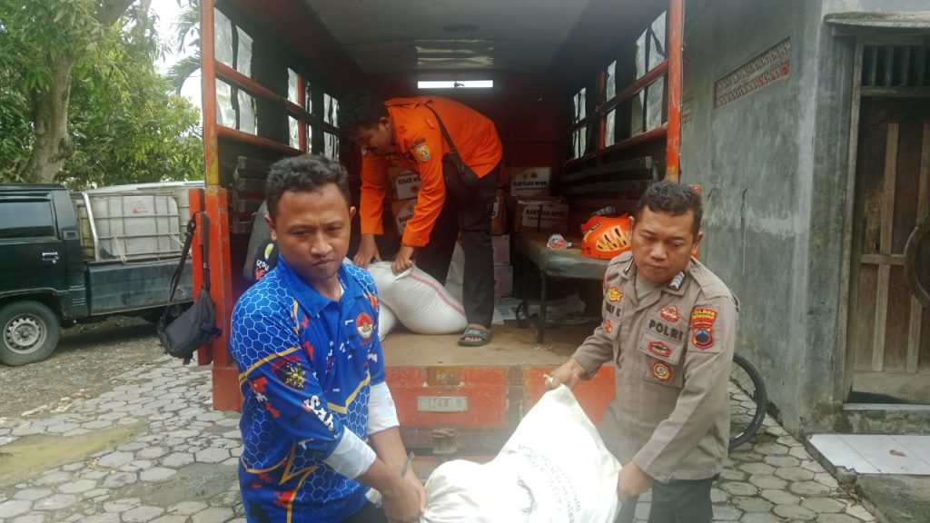Selain itu, BPBD Grobogan juga mendistribusikan bantuan logistik berupa kebutuhan pokok dan perlengkapan darurat kepada warga yang terdampak banjir sebagai upaya pemenuhan kebutuhan dasar selama masa tanggap darurat.