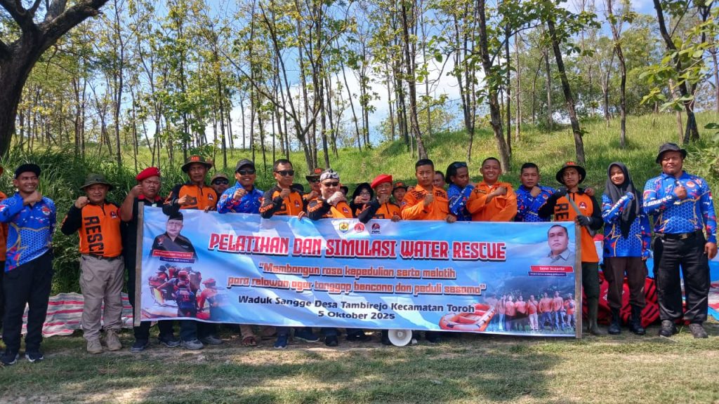 BPBD Kabupaten Grobogan menjadi narasumber dalam kegiatan “Pelatihan dan Simulasi Water Rescue” yang diselenggarakan oleh Pejuang Marhaenis Nusantara (PMN) Kabupaten Grobogan. Kegiatan ini dilaksanakan di kawasan Waduk Sanggeh, Desa Tambirejo, Kecamatan Toroh, dan diikuti oleh puluhan peserta yang terdiri dari anggota PMN, relawan kebencanaan, serta masyarakat sekitar waduk.