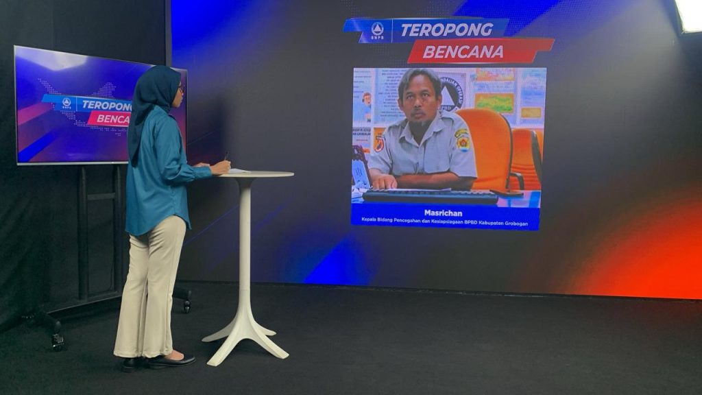 Kepala Bidang Pencegahan dan Kesiapsiagaan BPBD Kabupaten Grobogan menjadi narasumber dalam kegiatan Zoom Meeting “Teropong Bencana” yang diselenggarakan oleh Badan Nasional Penanggulangan Bencana (BNPB). Kegiatan ini membahas perkembangan terkini mengenai kesiapsiagaan dan penanganan bencana banjir di wilayah Kabupaten Grobogan.