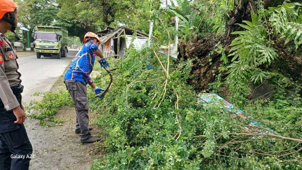 Proses evakuasi dan pembersihan material pohon dilakukan bersama unsur gabungan yang terdiri dari TRC BPBD Grobogan, Polres Grobogan, SAR Arnavat, PLN Purwodadi, Rescue Serang WKO, serta warga masyarakat sekitar.