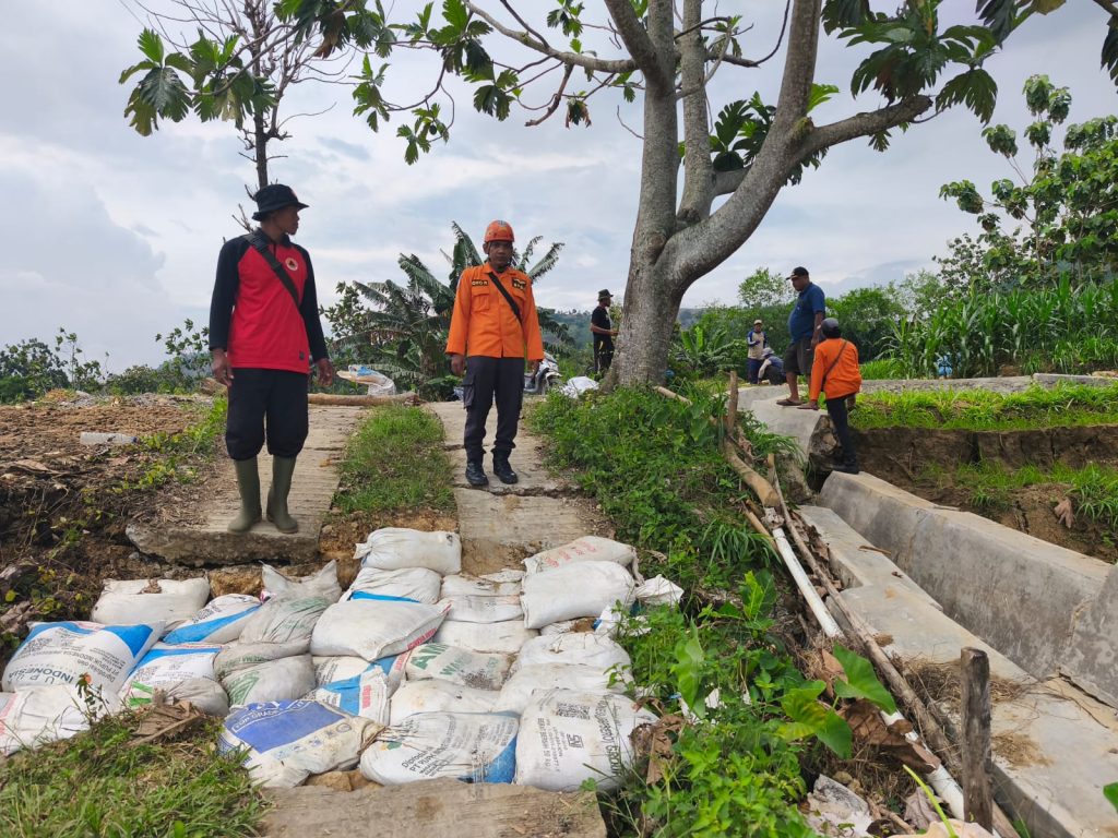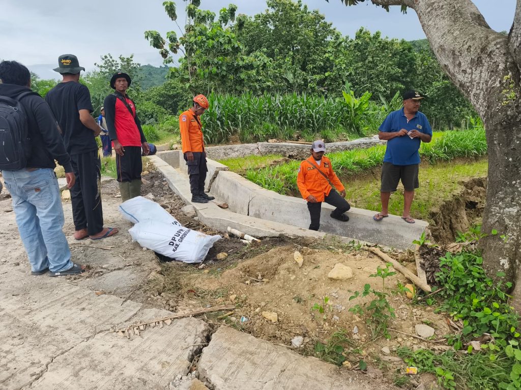 - Pemerintah desa dan warga menutup rekahan menggunakan kasang berisi pasir dan batu sebagai akses darurat.