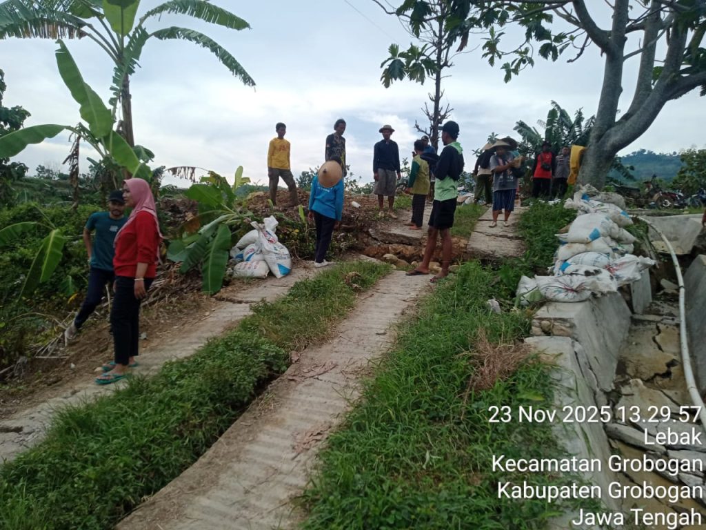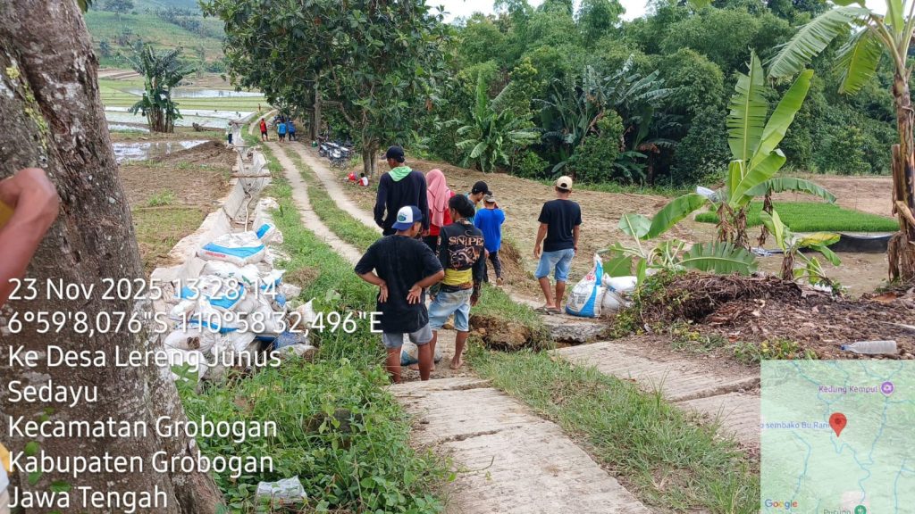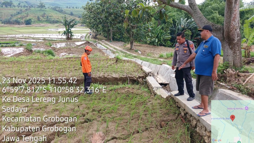 Minggu, 23 November 2025 – BPBD Kabupaten Grobogan melaporkan terjadinya kejadian tanah gerak di Dusun Sandi, Desa Sedayu, Kecamatan Grobogan. Kejadian ini dipicu oleh pergerakan tanah yang semakin intens sejak Sabtu dini hari.