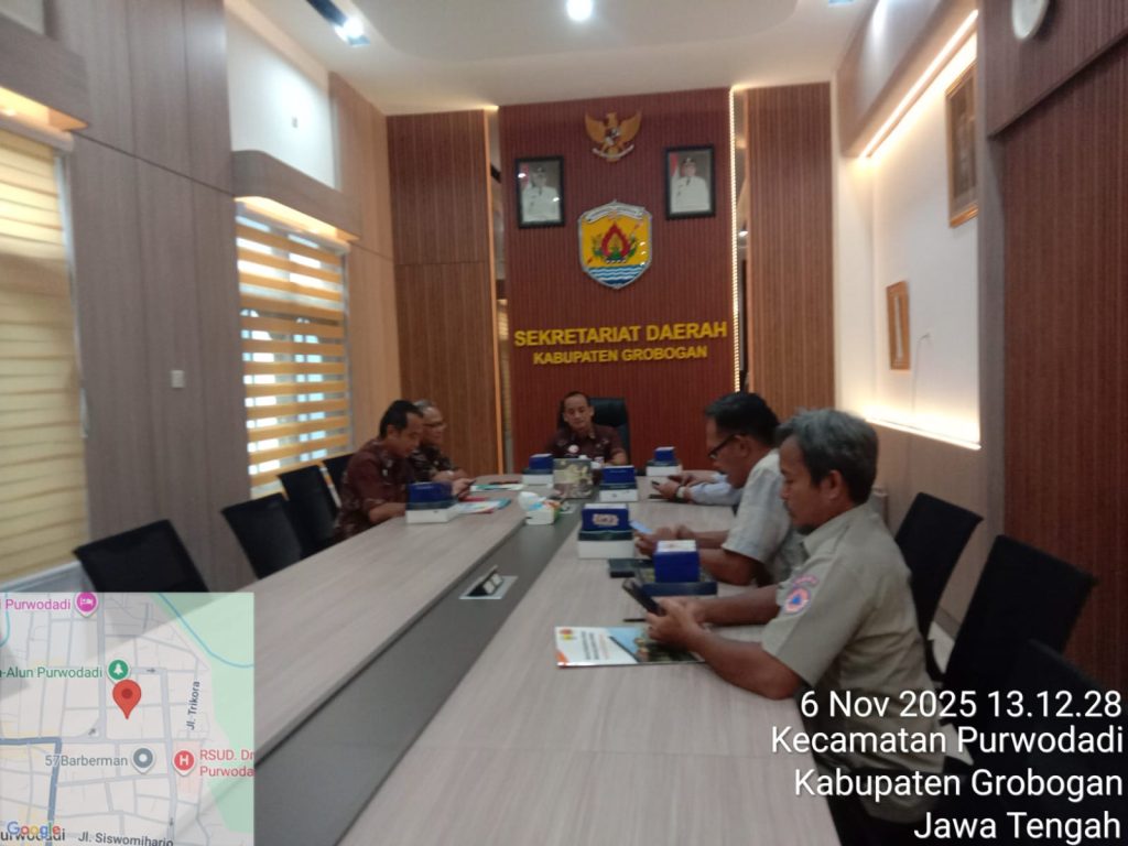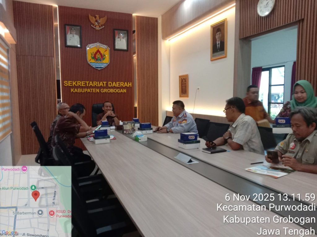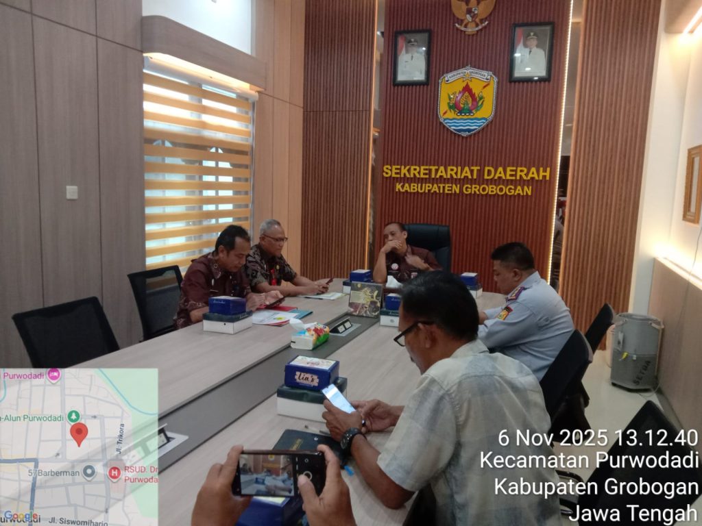 Kamis, 6 November 2025 — Pemerintah Kabupaten Grobogan melalui Sekretariat Daerah menggelar rapat membahas penanganan pohon-pohon di tepi jalan dan fasilitas umum dalam menghadapi musim penghujan, serta pembahasan lanjutan terkait penataan pulau jalan di Jalan R. Suprapto Purwodadi.