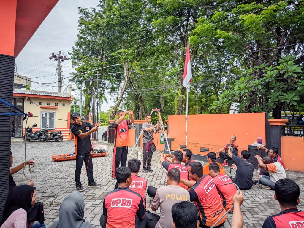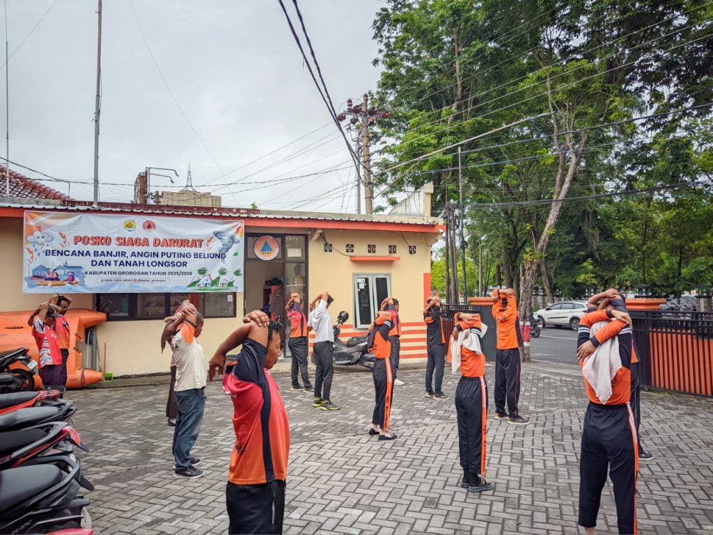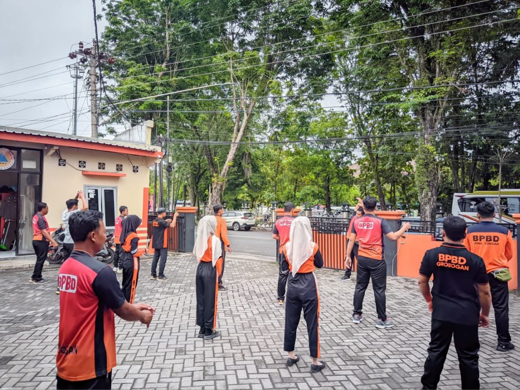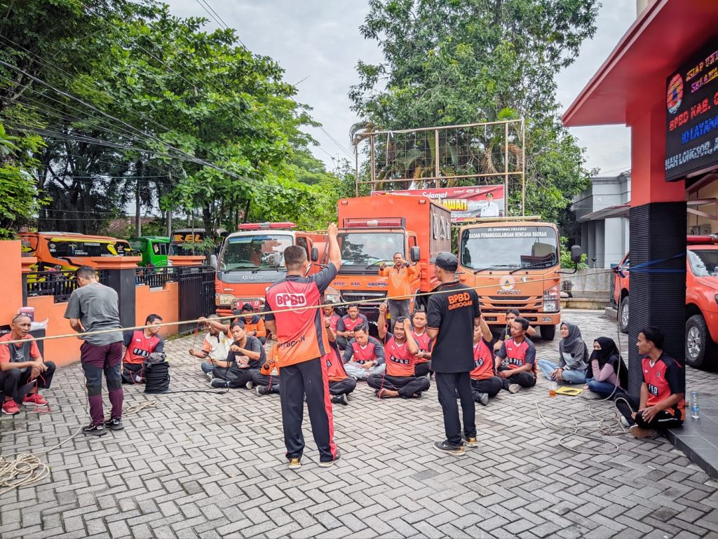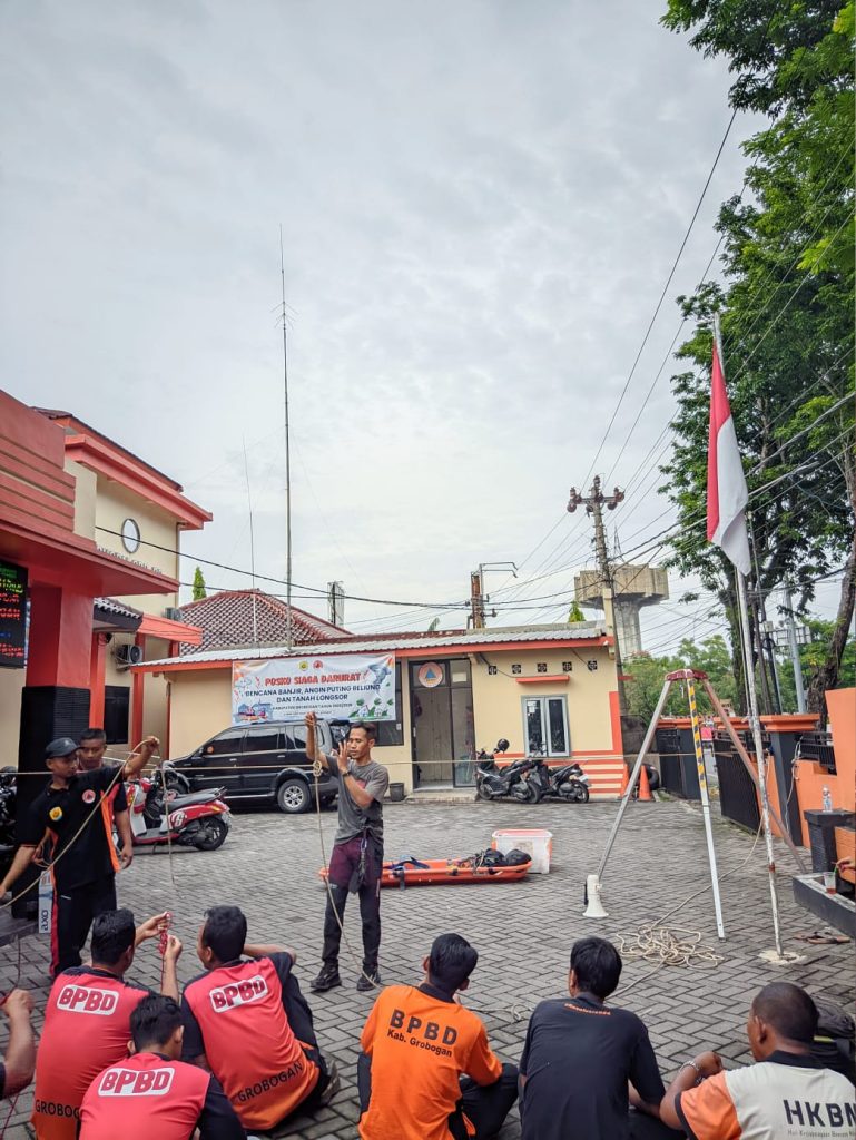Jumat, 14 November 2025 – Tim Reaksi Cepat (TRC) BPBD Kabupaten Grobogan melaksanakan kegiatan pembinaan jasmani (binjas) yang dilanjutkan dengan peningkatan kapasitas melalui pelatihan teknik simpul dan penggunaan berbagai jenis simpul yang diperlukan dalam penanganan kedaruratan.