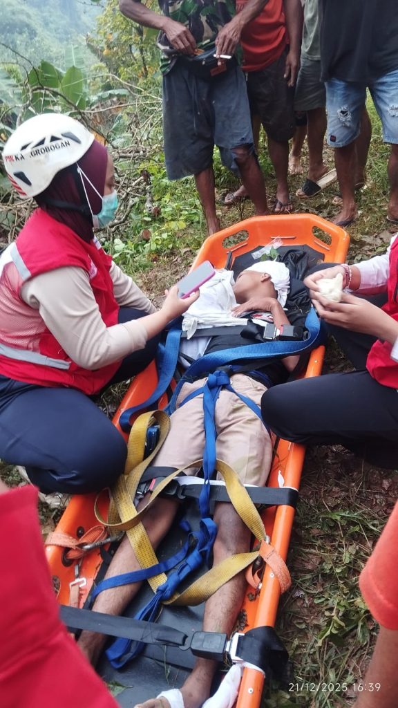 Grobogan – Badan Penanggulangan Bencana Daerah (BPBD) Kabupaten Grobogan melalui Pusat Pengendalian Operasi Penanggulangan Bencana (Pusdalops-PB) merespons cepat laporan kejadian orang terperosok ke jurang yang terjadi di kawasan wisata Air Terjun Gulingan, Dusun Gulingan, Desa Sedayu, Kecamatan Grobogan, pada Minggu (21/12/2025).