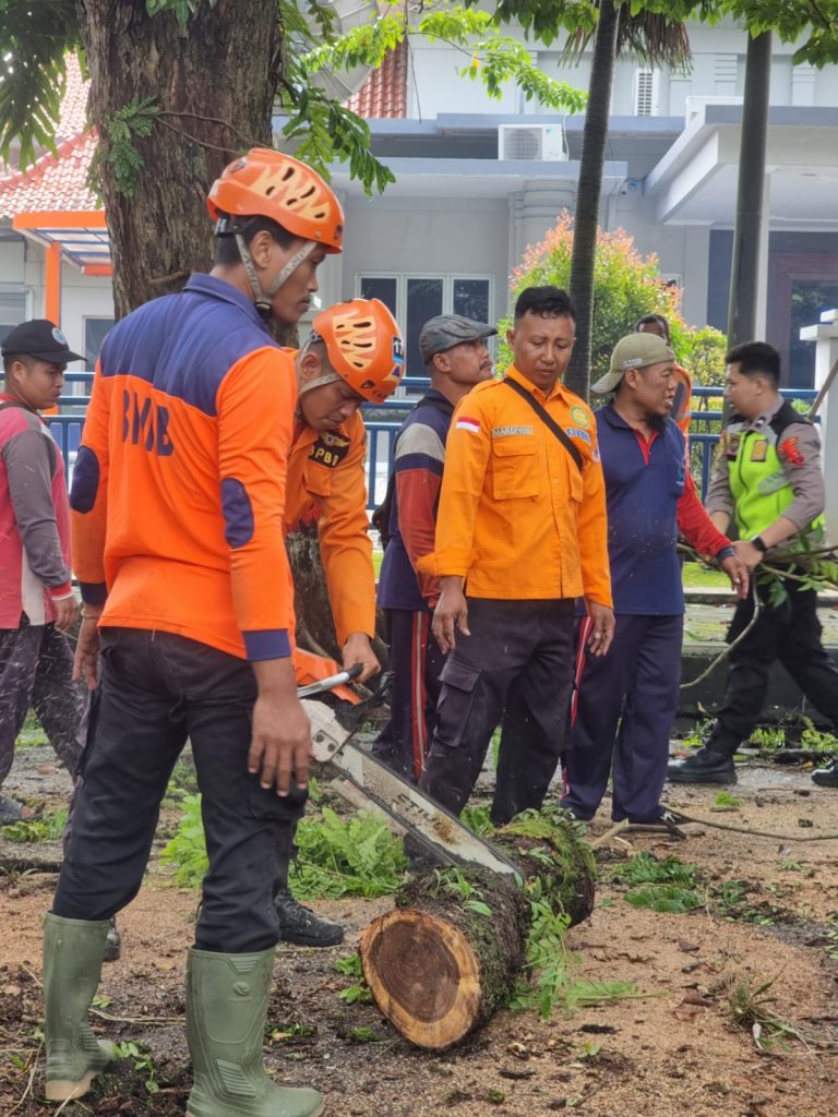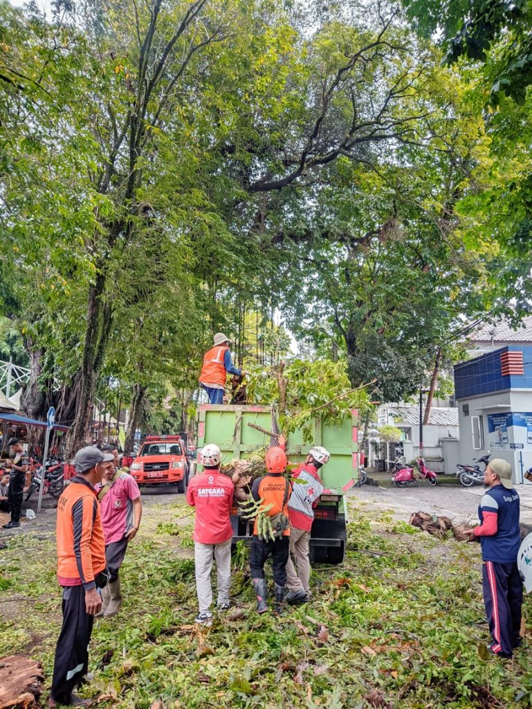 Purwodadi – Minggu, 22 Maret 2026 pukul 08.00 WIB, Badan Penanggulangan Bencana Daerah (BPBD) Kabupaten Grobogan bersama unsur gabungan yang terdiri dari TNI, POLRI, DPUPR Grobogan,DLH Grobogan, PLN Purwodadi, serta Relawan Penanggulangan Bencana melaksanakan kegiatan penanganan pohon tumbang di wilayah Kota Purwodadi.