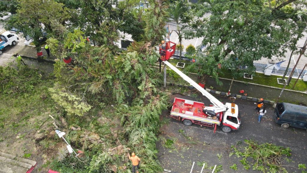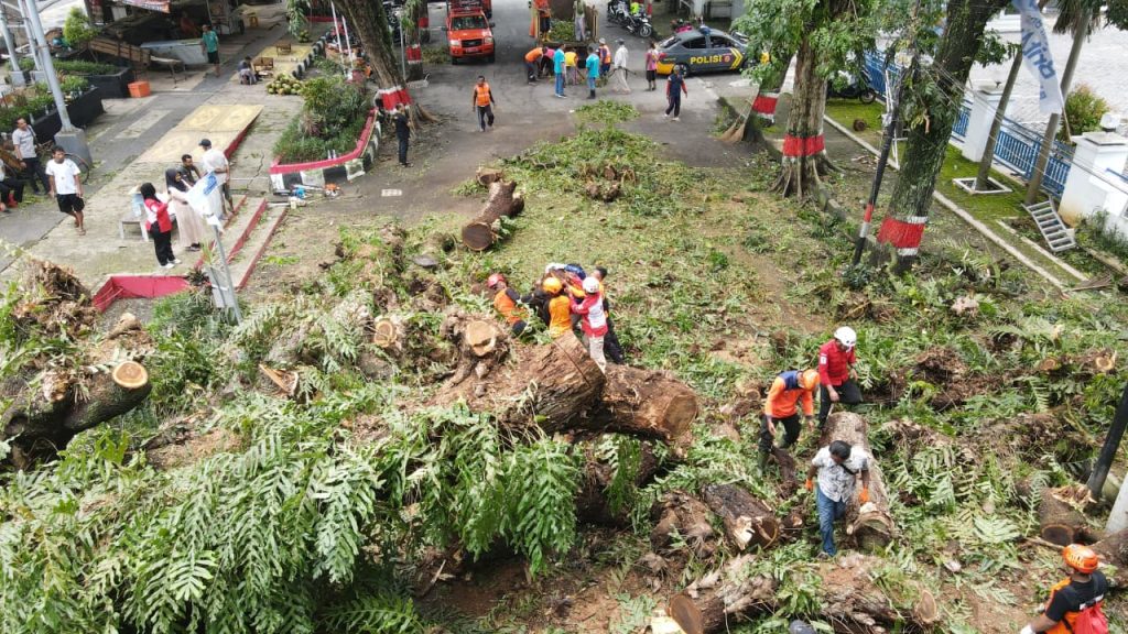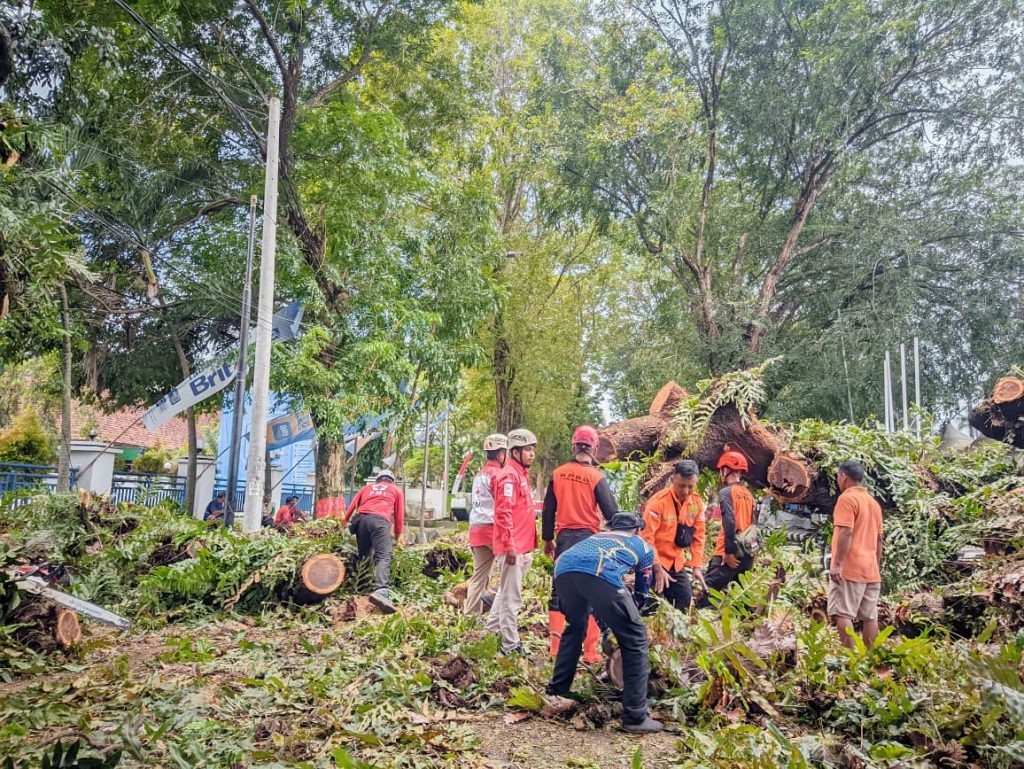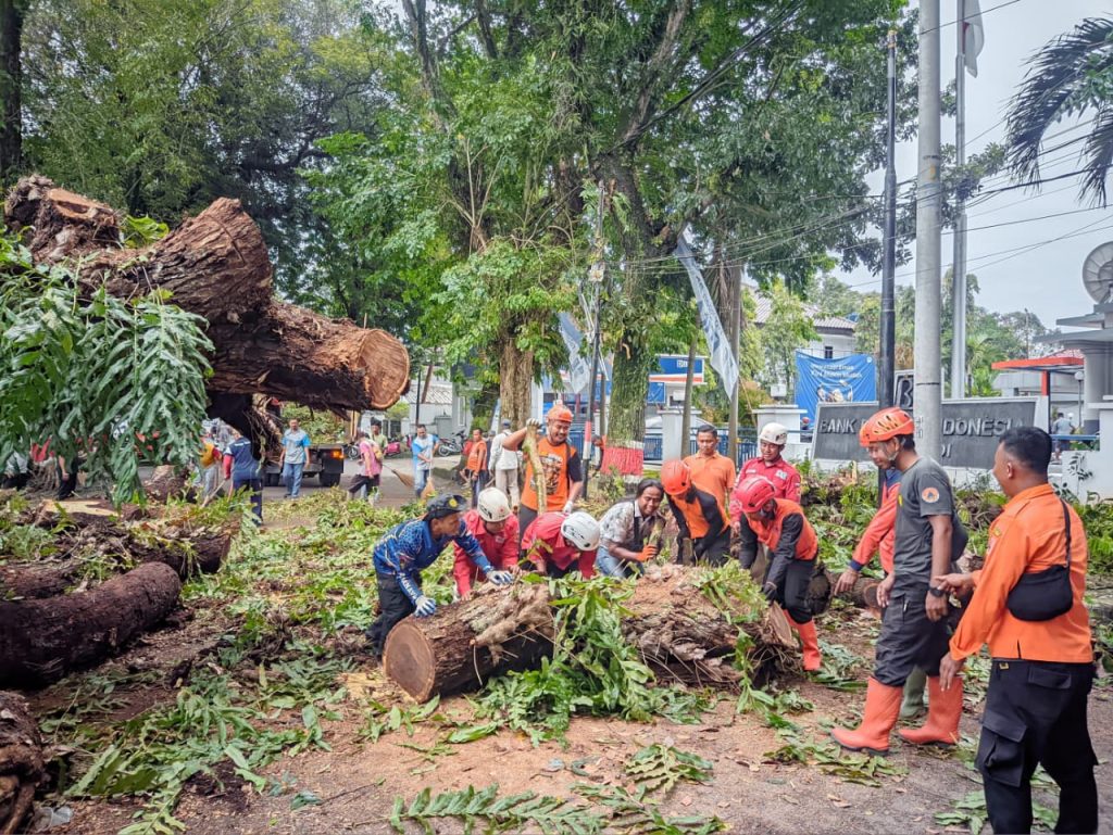Petugas gabungan bergerak cepat melakukan pemotongan dan pembersihan material pohon yang menghalangi badan jalan. Berkat kerja sama dan sinergi seluruh unsur yang terlibat, proses penanganan berjalan lancar.