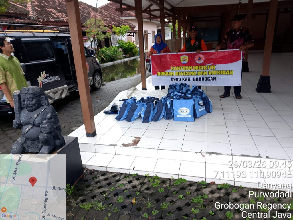 Bantuan disalurkan ke lima lokasi terdampak, yaitu Kelurahan Kalongan Kecamatan Purwodadi, Kelurahan Danyang Kecamatan Purwodadi, Desa Lajer Kecamatan Penawangan, Desa Karangsono Kecamatan Karangrayung, serta Desa Krangganharjo Kecamatan Toroh. Kegiatan ini merupakan bentuk respon cepat pemerintah daerah dalam membantu meringankan beban masyarakat pasca kejadian bencana.