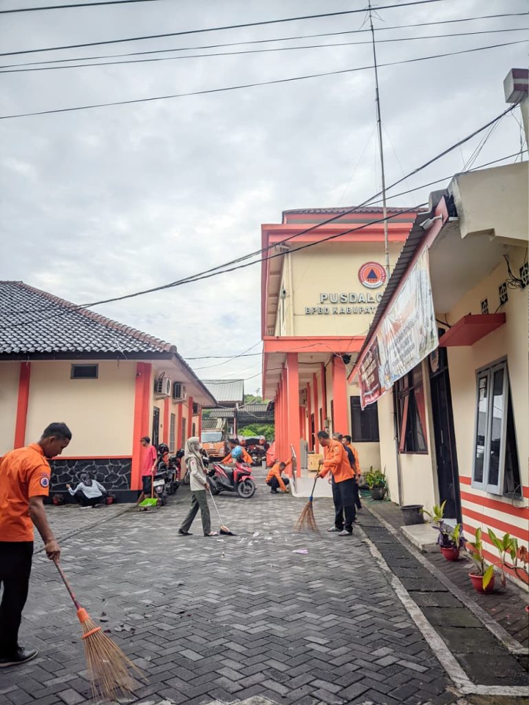 Kerja bakti diikuti oleh seluruh pegawai BPBD Kabupaten Grobogan dengan penuh semangat dan kebersamaan. Adapun kegiatan yang dilakukan meliputi pembersihan halaman kantor, penataan lingkungan, serta pengelolaan sampah guna menjaga kebersihan dan kenyamanan area kerja.