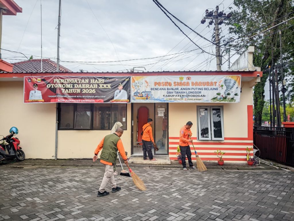 Grobogan — Selasa, 28 April 2026, Badan Penanggulangan Bencana Daerah (BPBD) Kabupaten Grobogan melaksanakan kegiatan kerja bakti di lingkungan Kantor BPBD Kabupaten Grobogan. Kegiatan ini merupakan bagian dari dukungan terhadap Gerakan Indonesia ASRI yang bertujuan menciptakan lingkungan yang bersih, sehat, dan lestari.