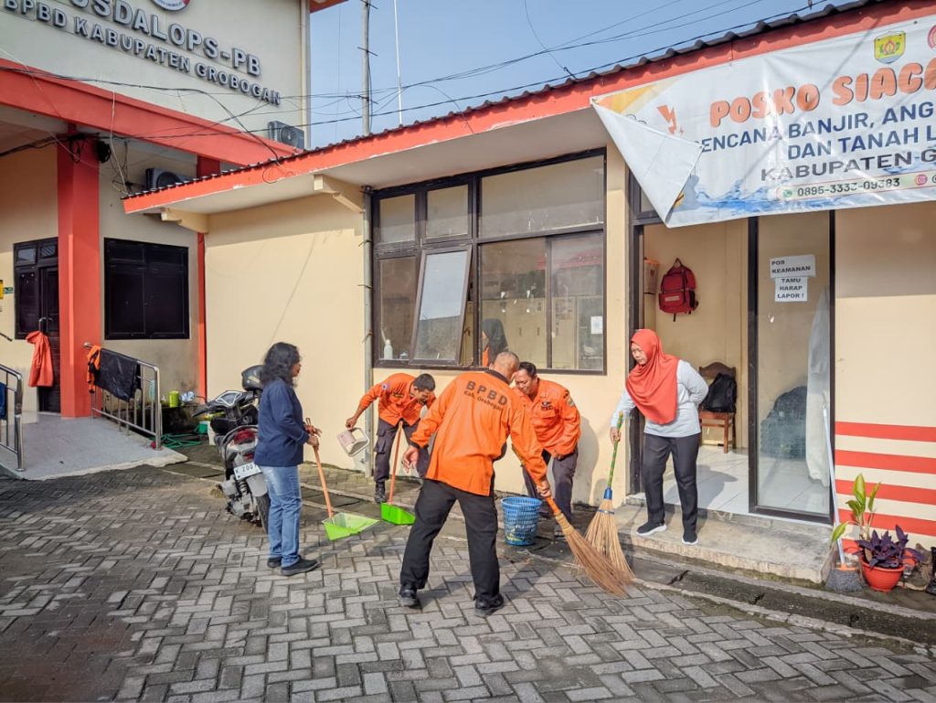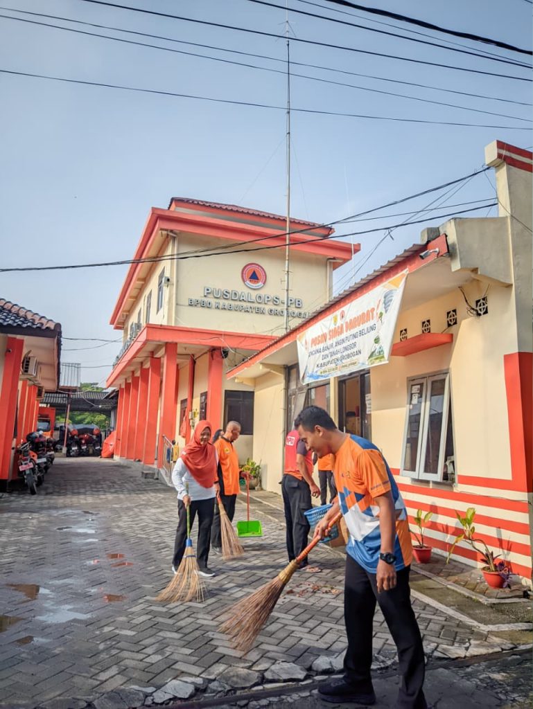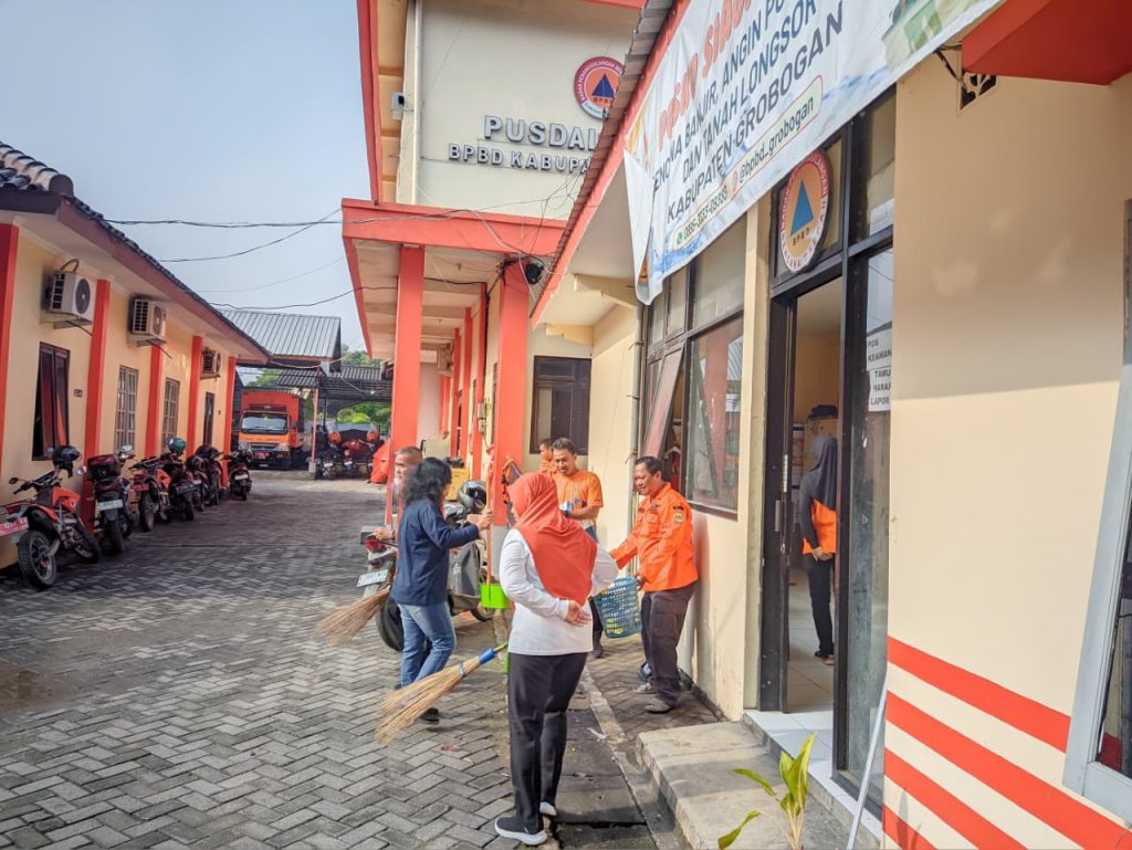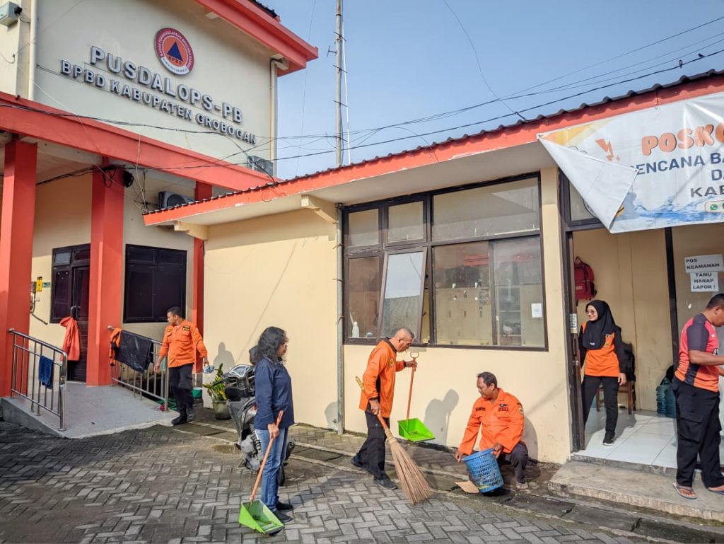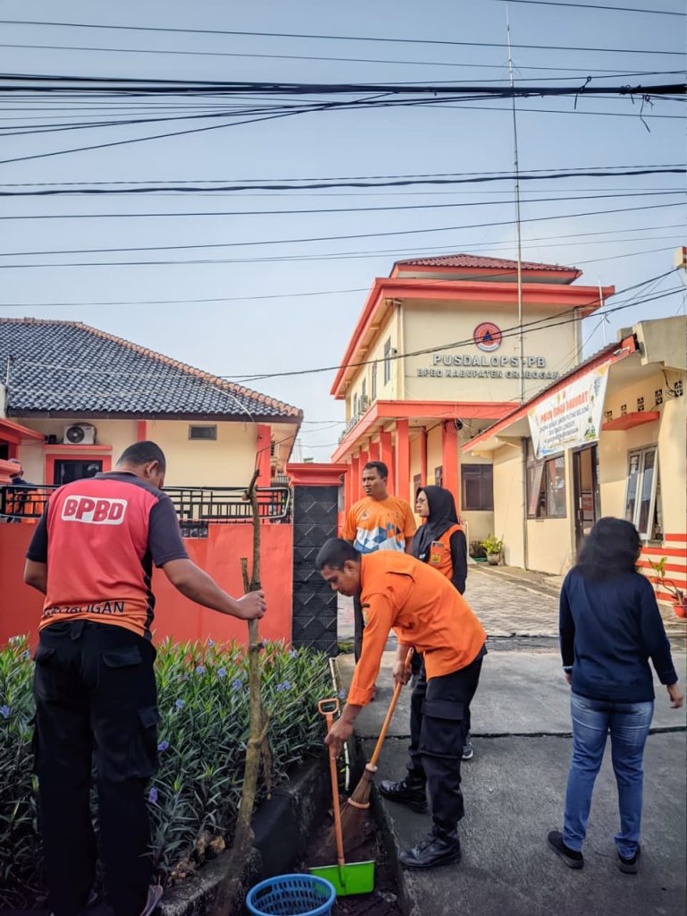 Grobogan, Selasa (7 April 2026) — Badan Penanggulangan Bencana Daerah (BPBD) Kabupaten Grobogan melaksanakan kegiatan kerja bakti dalam rangka mendukung Gerakan Indonesia Asri. Kegiatan tersebut dilaksanakan di lingkungan Kantor BPBD Kabupaten Grobogan dengan melibatkan seluruh karyawan dan karyawati.