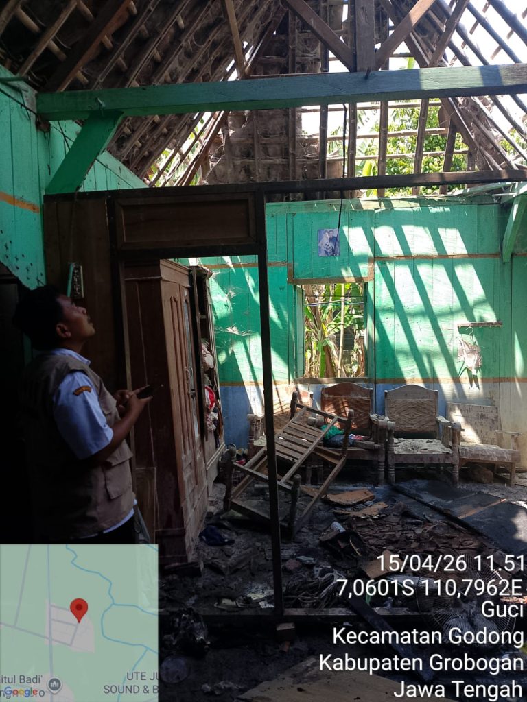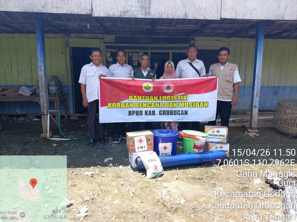 GROBOGAN (15/04/24) – Badan Penanggulangan Bencana Daerah (BPBD) Kabupaten Grobogan melalui Bidang Rehabilitasi dan Rekonstruksi (RR) bersama Bidang Logistik dan Peralatan (Darlog) melaksanakan kegiatan assessment serta pendistribusian bantuan logistik kepada korban musibah kebakaran rumah di Desa Guci, Kecamatan Godong.