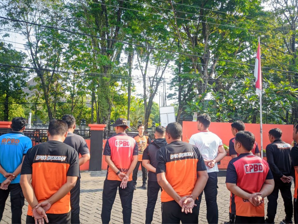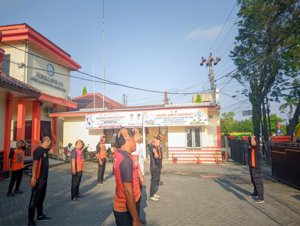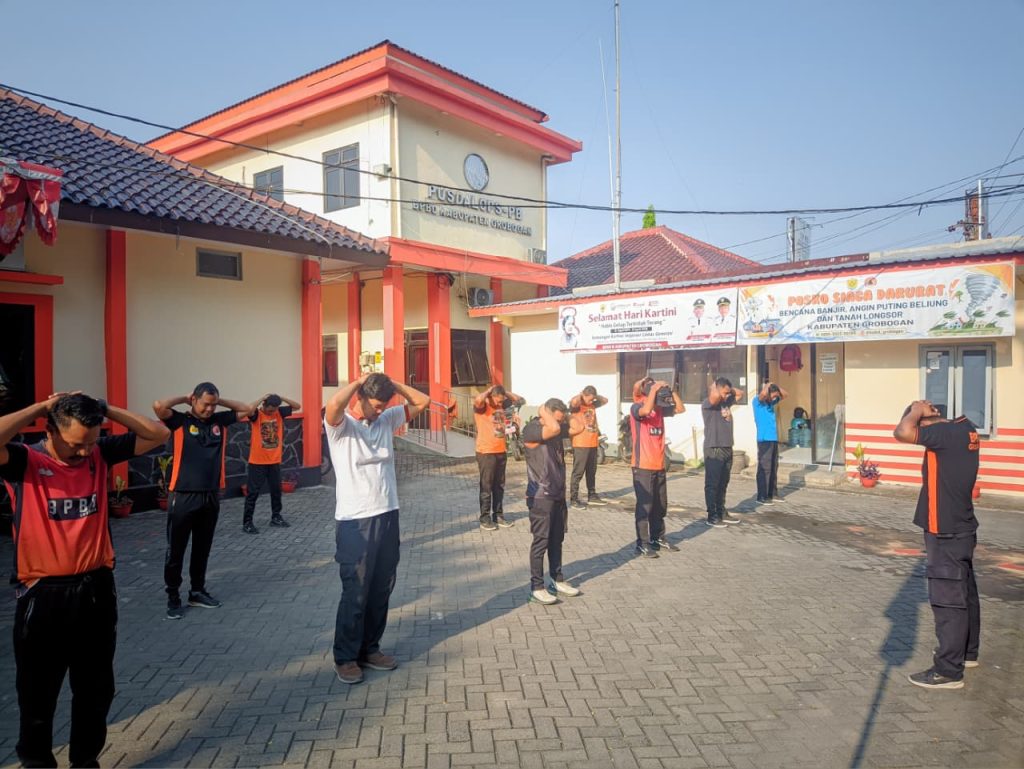 Purwodadi (17/04/26) – Tim Reaksi Cepat (TRC) BPBD Kabupaten Grobogan melaksanakan kegiatan Pembinaan Jasmani (Binjas) yang bertempat di halaman Kantor BPBD Kabupaten Grobogan.