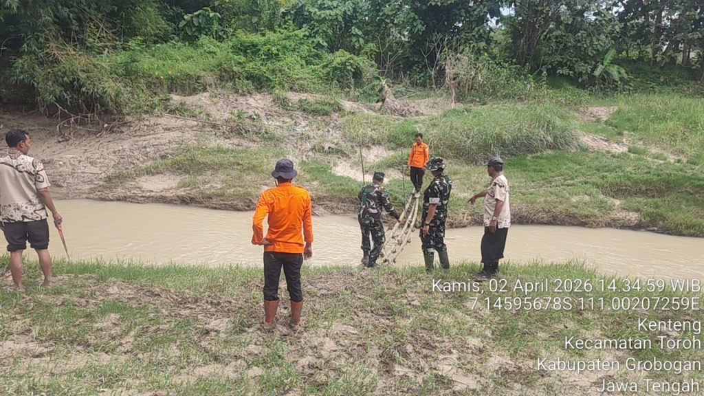 Grobogan, Kamis 2 April 2026 – BPBD Grobogan melalui Tim Reaksi Cepat (TRC) melaksanakan kegiatan pendampingan pengukuran jembatan gantung di dua lokasi, yakni Desa Toko, Kecamatan Penawangan dan Desa Jambon, Kecamatan Pulokulon.